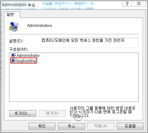 하지만, 윈도우 비스타 운영체제부터 관리자 그룹에 소속된 사용자라도 전적으로 신뢰하지 않고, 사용자 계정 컨트롤을 실행한다.