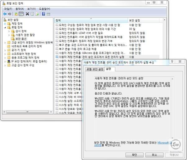 사용자 계정 컨트롤이 실행되면 프로그램을 잠시 동안 관리자 승인 모드를 거쳐서 관리자 관한을 부여한다.