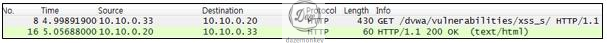 희생자가 게시글 클릭 시 패킷을 보면 희생자 아이피와 서버 아이피만 존재하고, 공격자 아이피는 존재하지 않는다. 또한, 희생자가 접근한 웹 페이지 주소만 존재하고, daze.html 페이지는 존재하지 않는다.