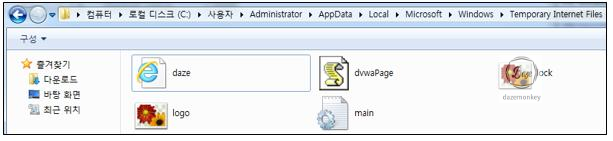 인터넷 익스플로러로 웹 페이지를 접속하면 접속한 로그가 임시 인터넷 파일에 기록된다. 임시 인터넷 파일이 존재한 디렉토리로 이동하면 daze.html이 저장되어 있다.