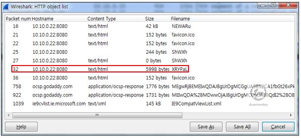 XRYPaL 파일은 취약점을 유발하고, 공격을 수행하는 코드가 존재한 파일이다. XRYPaL 파일을 선택하고, Save As 버튼을 클릭해서 daze.html로 저장한다.