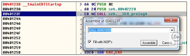 0x401238 주소로 이동하니 0x40123F 주소에 SEH 함수를 호출하는 코드가 보인다. F7를 눌러 함수 내부로 들어가보자.
