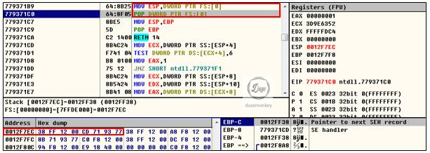 MOV DWORD PTR FS:[0], EAX