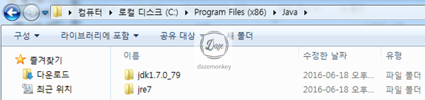 JDK 7 버전을 설치하면 32 비트 폴더인 Program Files (x86) > Java 폴더에 JRE, JDK가 설치된다.