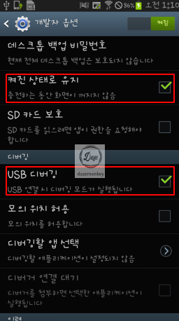 - 디바이스 정보 > 빌드 번호를 연속으로 누름