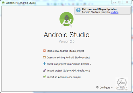 SDK 업데이트가 완료되면 안드로이드 스튜디오를 실행할 수 있는 여러 가지 방법이 출력된다.