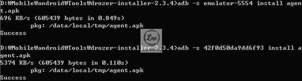 드로저 서버 구동에 필요한 agent.apk 파일을 adb를 이용하여 가상 단말기에 설치한다.