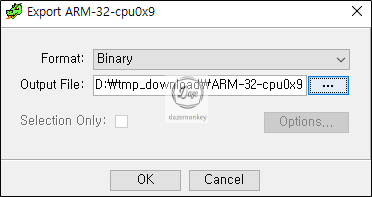 코드 패치된 파일을 저장하려면 File > Export Program > Format : Binary를 선택하면 된다.