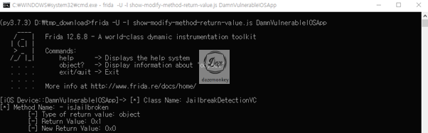○ frida -U -l show-modify-method-return-value.js DamnVulnerableIOSApp