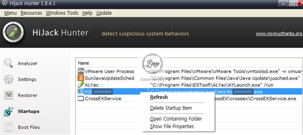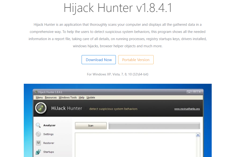 Hijack Hunter는 NoVirus Thanks 회사에서 제공하는 무료 시스템 검사 도구이다.