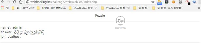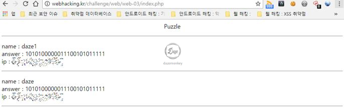 name은 사용자가 입력한 문자열, answer는 5*5 사이즈의 검은색 타일, ip는 현재 시스템의 공인 아이피 주소를 의미한다.
