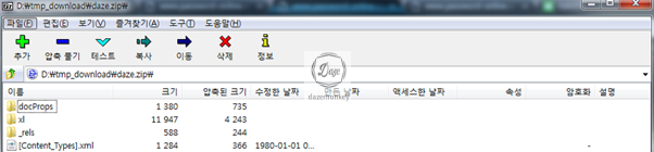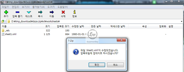 파일이 수정되었으므로 압축 파일이 자체적으로 업데이트한다.