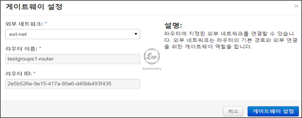 test1 사용자로 로그인 -> 프로젝트 -> 네트워크 -> 라우터 -> 라우터 생성을 클릭해 testgroups1-router 이름의 라우터를 생성한다.
