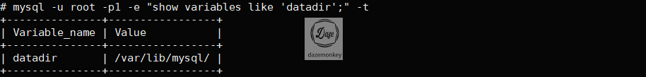 ○ mysql -u root -p패스워드 -e "show variables like 'datadir';" -t